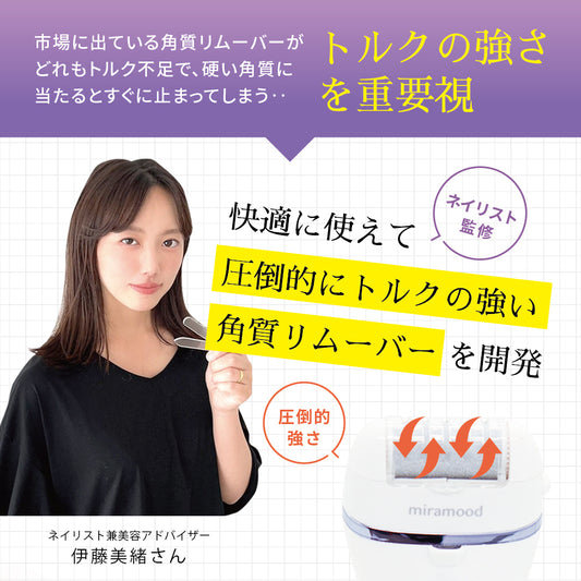 miramood かかと削り 角質リムーバー かかとケア 【ネイリスト監修×かかと角質取り×USB充電×LED×ライト付き×ローラー×3種×電動角質リムーバー】 (バイオレット)
